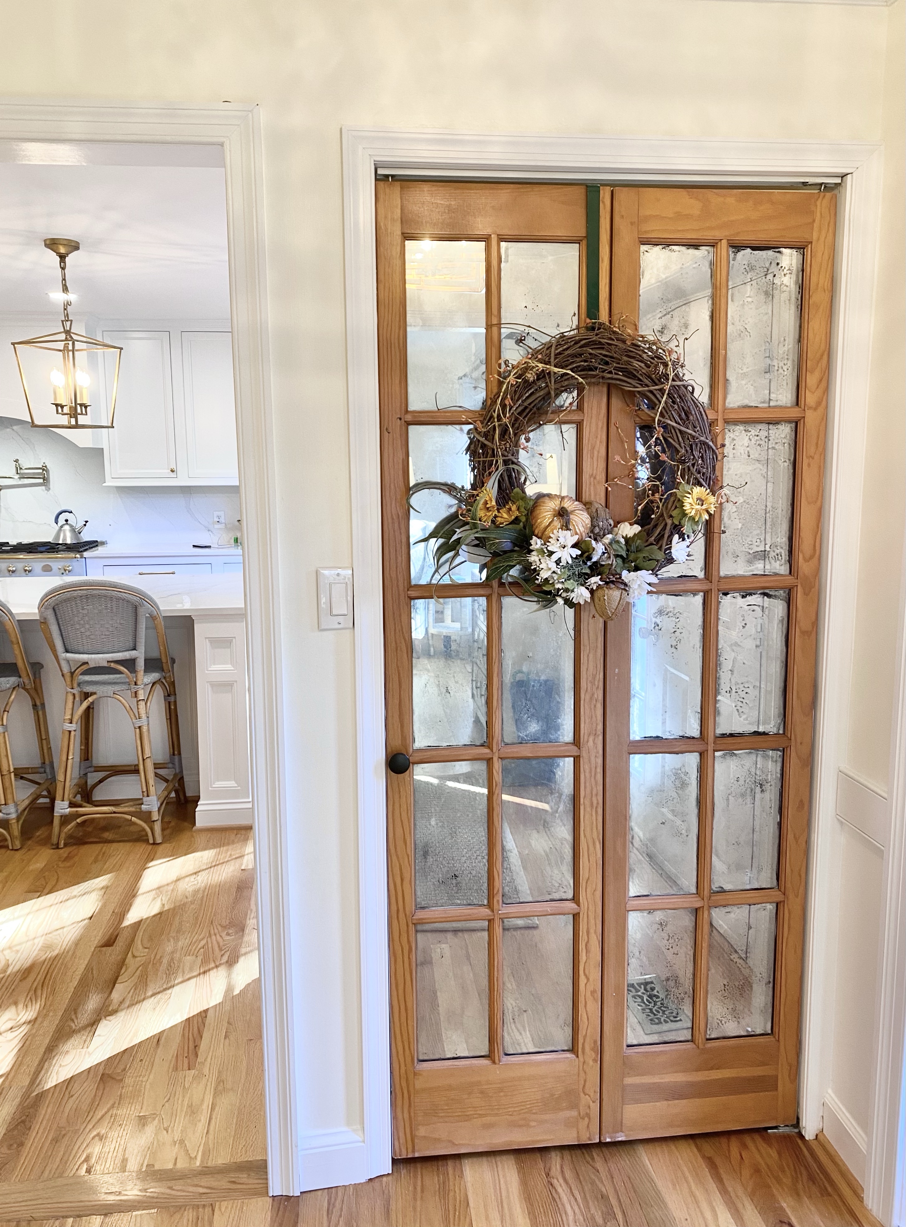 We were lucky in that we were replacing the bifold doors to our porch with a sliding door. But, they are nothing fancy and OfferUp is full of cheap, standard sized French doors or glass doors that can be used for this project. The old closet had a 48” set of doors, and the bifold door off our porch was 36”. So we reframed the closet. I don’t recommend that part😆. We wanted the walkway to our kitchen bigger, so we made the closet smaller, it wasn’t just about reusing our doors. If you have a closet with a standard size door, just look for one the same size. Much easier.
